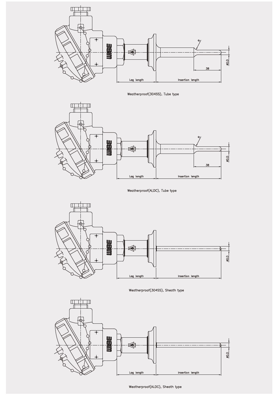 Double element : 4 and 6 wire Standard features Head type Weatherproof (ALDC)