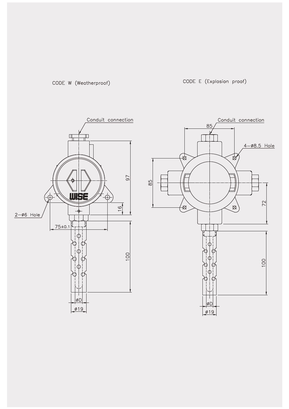 Low cost sensing element. Standard features Head Aluminium casting Enclosure Weatherproof : R430W