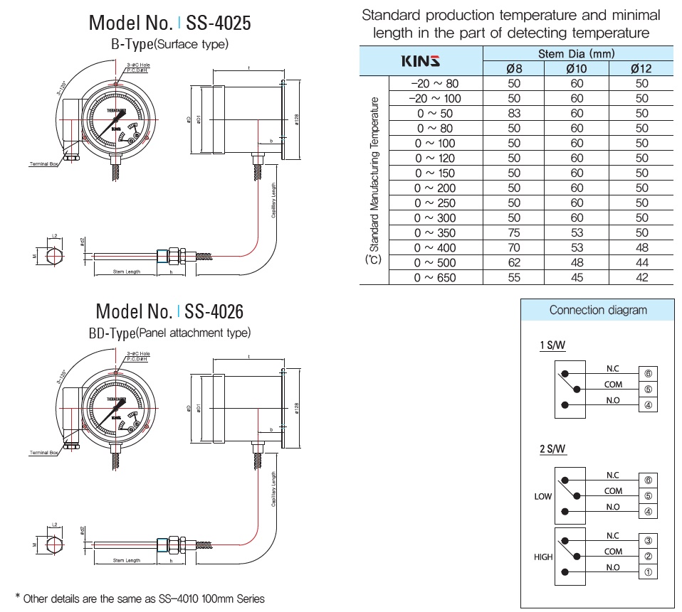 압력식 마이크로 접점온도계 SS-4025제품:압력식 마이크로 접점온도계 SS-4025/6