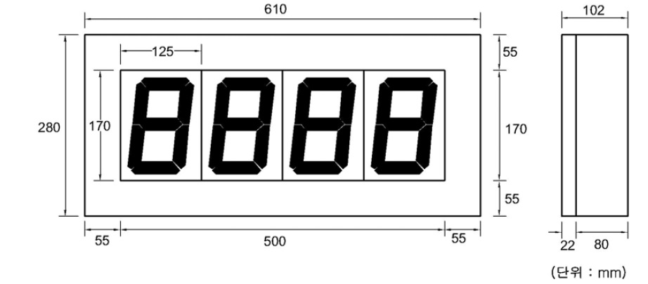 1) 1단 : 610(W) x 280(H) x 102(D)